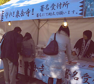 義士祭当日に泉岳寺境内に設けられた署名ブース=同会提供