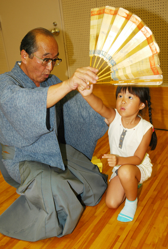 市内の能楽愛好家で作る赤穂こども能楽教室実行委員会(榊努会長)が財団法人伝統文化活性化国民協会の助成で7月下旬から10回シリーズで主催。20人が応募し、重要無形文化財指定保持者の江崎金治郎さん=姫路市=ら能楽師4人が週2回のペースで観世流仕舞と大倉流小鼓を指導している。