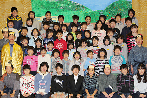今回のテーマは「感謝〜このふるさとにありがとう〜」。地域に伝わる民話「灰の縄ない」を基にしたストーリーで人とのつながりの大切さ、助け合いの心を伝える。また、3・4年生、5年生もそれぞれ有年地区の民話をベースにした音読劇、芝居を上演し、1・2年生は演目紹介を担当。さらに、全児童58人が谷本校長の指揮と江尻裕亮教頭の伴奏で校歌を合唱する。会場も音響のすぐれたホールに移し、記念公演ならではのプログラムとなっている。