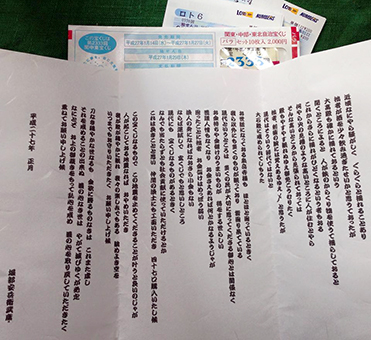 泉岳寺横マンション建設の反対運動を支援しようと「堀部安兵衛」から届いた宝くじ入りの手紙