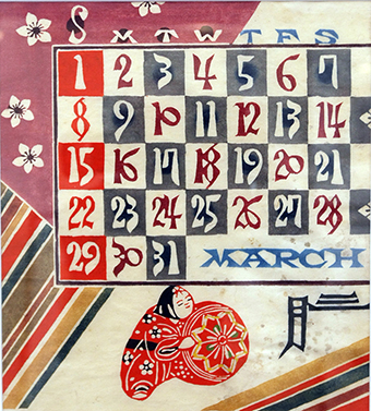 展示作品の一つ、芹沢〓介作「CALENDAR1970年3月」