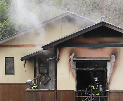 火災が発生した民家で鎮圧を確かめる消防隊員
