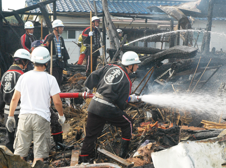 木造瓦葺2階建て約113平方メートルを全焼し、約1時間後に鎮火。