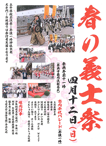 毎年4月第2日曜に開く恒例イベント。男性による義士行列が行進する12月の義士祭に対し、「春らしく華やかな祭りにしよう」と平成16年から女人義士行列をパレードの目玉にしている。