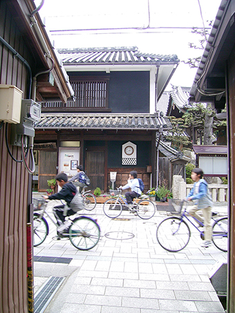 「赤穂ほのぼの百景編」と題した今回は、これまでに展示した作品と新作を合わせ、ハガキ大からA4判まで約70点。坂越の路地を自転車で走る子どもたち、軒先で昼寝する犬など、タイトル通りの作品が並ぶ。特産の塩味まんじゅうを汁粉やラテにして味わうレシピ写真も展示している。