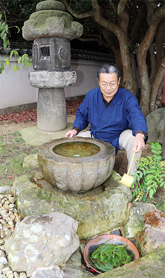 清らかな音色が響く小堀遠州考案の水琴窟と再現した長棟州彦さん
