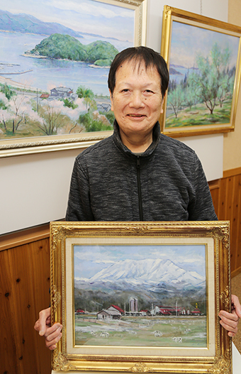 風景画をライフワークとする坂越の安藤慶一さん(81)がF6号から20号まで9点を展示。生島や尼子山など地元の景色を描いた作品もある。