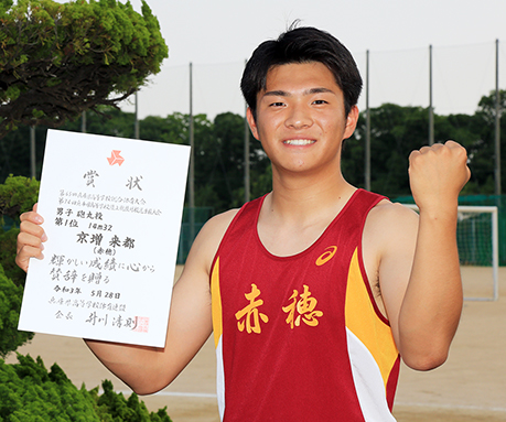 陸上の兵庫県高校総体(5月28〜30日、神戸ユニバー記念競技場)で赤穂3年の京増来都(きょうます・らいと)君(17)=中広=が男子砲丸投で優勝した。