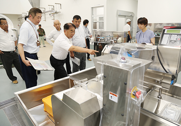 竣工検査には建設水道委員会と総務文教委員会に所属する議員11人が参加。新たに導入するスチームコンベクションオーブンを備えた調理室やアレルギー食専用の調理ライン、外部から虫やほこりなどを入り込ませない構造の搬出口などを視察した。