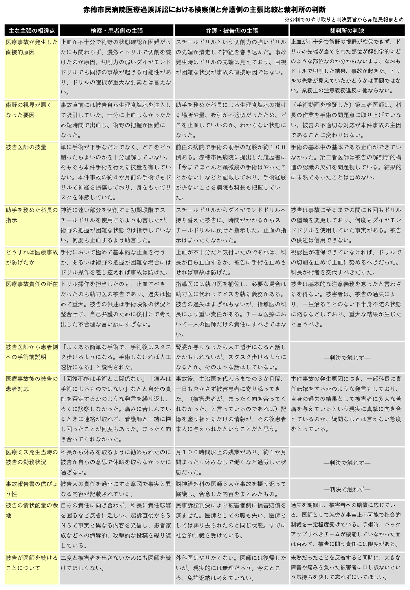 一方、求刑から減刑して執行猶予を付けた理由として、被告が医師として就労することが事実上不可能な状態になっている点や、民事訴訟判決により被害者側への賠償に応じていること、法廷で過失を認めて謝罪したことに加え、「経験の乏しい被告をバックアップすべきチームが機能していなかった面は否めず、被告に刑事責任を問うにも限度がある」とし、被告を取り巻いた病院や診療科のチーム医療の不備にも言及した。