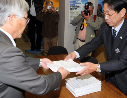 署名は3648筆、意見書は個人・団体から寄せられた238通。川西康行さん(65)=鷏和=ら同会世話人8人で県民局を訪問し、畠充治・県民室長に「市民一人ひとりの思い、声が詰まっています」と手渡した。畠室長は「意見書と署名を十分踏まえて対応していきます」と話した。